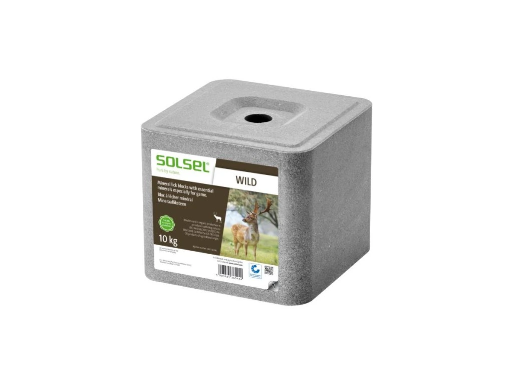 SOLSEL® WILD je minerálny liz vyvinutý špeciálne pre potreby divej zveri, ako sú jeleň, srnec, daniel či diviak, u ktorých je zabezpečenie dostatočného príjmu sodíka a mikroprvkov kľúčové pre správne fungovanie organizmu.